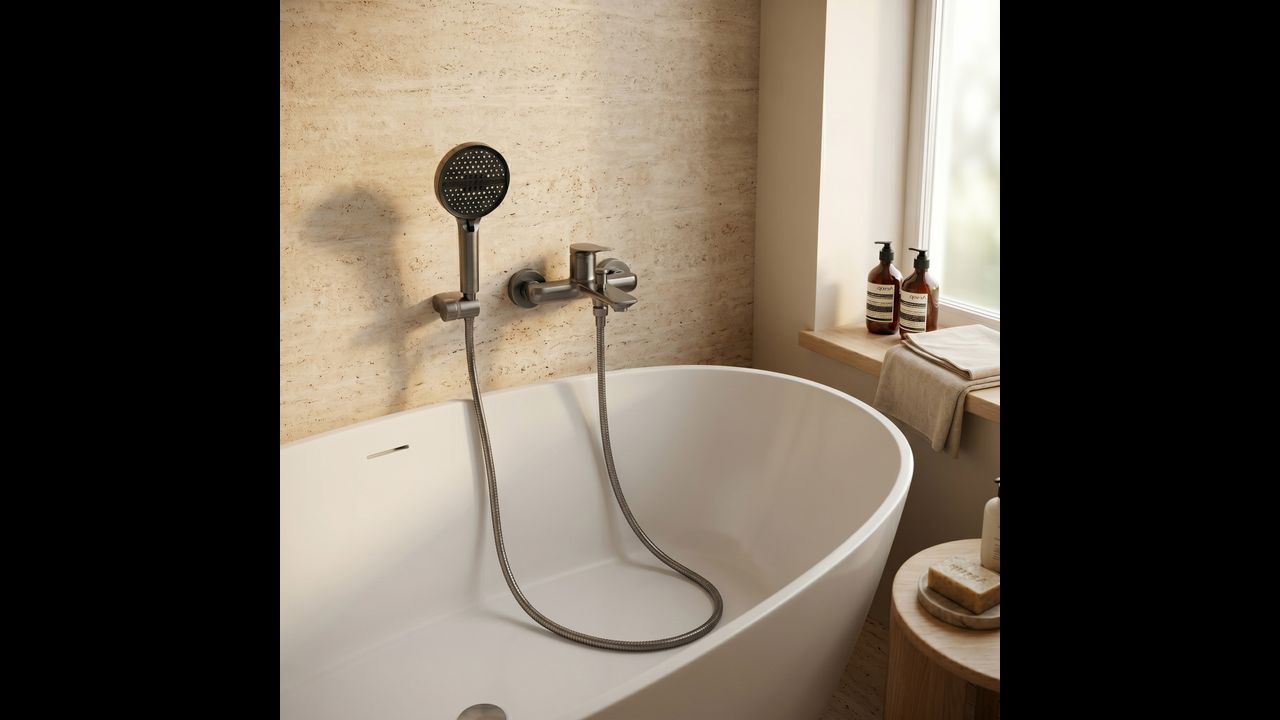 Bateria de cadă Vision în culoarea aurie este o propunere elegantă pentru băi moderne și rafinate. Forma zveltă și pronunțată, montajul pe perete și finisajul auriu strălucitor îi conferă un caracter luxos și subliniază prestigiul zonei de baie. Setul cu pară de duș reprezintă o soluție practică și estetică, care introduce în interior o strălucire de bijuterie.