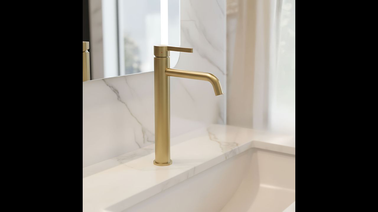 Adu un design deosebit și funcționalitate în baia ta cu bateria înaltă pentru lavoar Rea Foster în finisaj auriu periat. O combinație ideală între stil contemporan și fiabilitate, care va impresiona orice utilizator. Textura striată unică a manetei adaugă personalitate, iar corpul solid din alamă garantează durabilitate pe termen lung.
