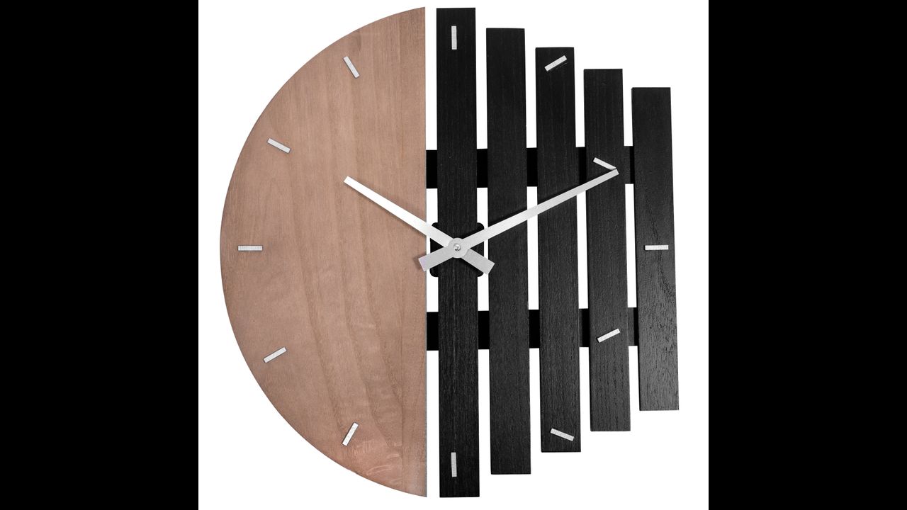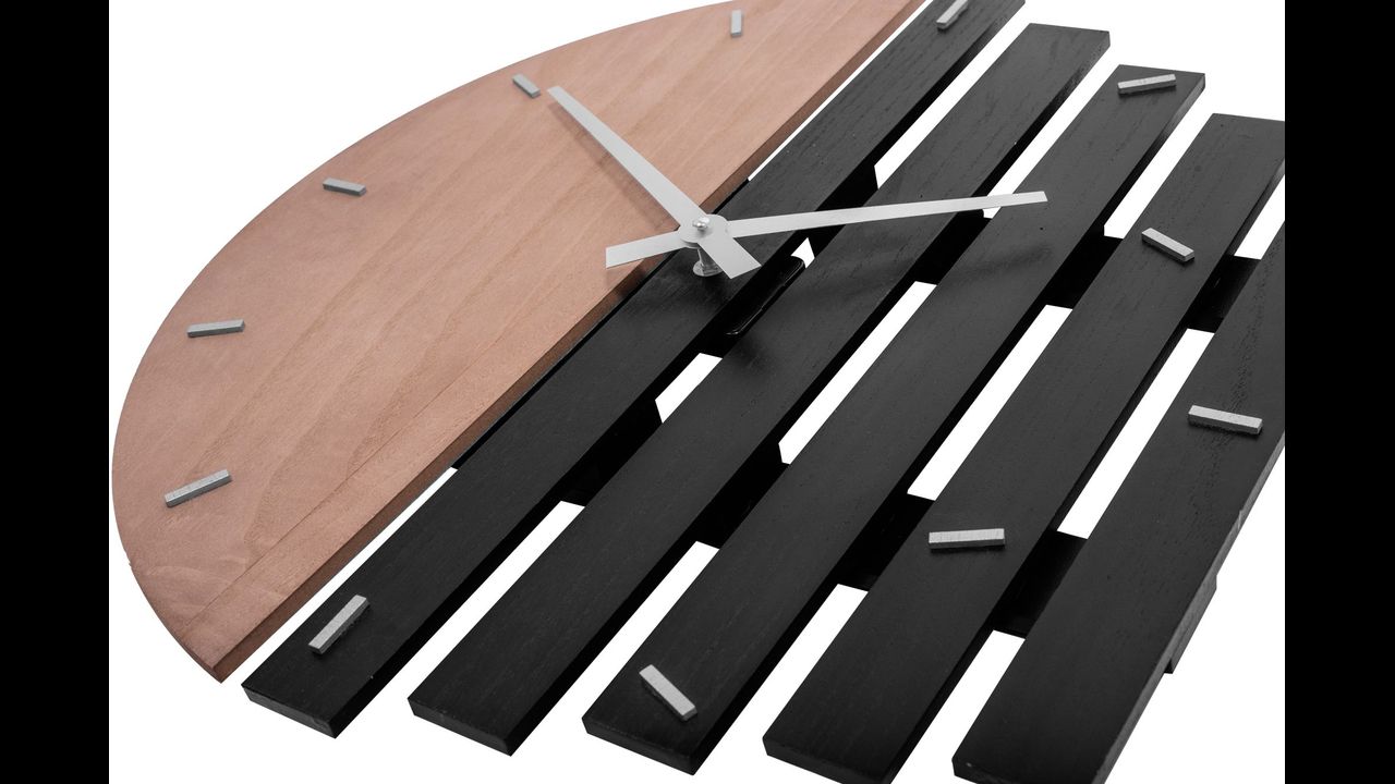 Nowoczesne połączenie drewna z antracytem, sprawia że zegar jest niesamowitą ozdobą.