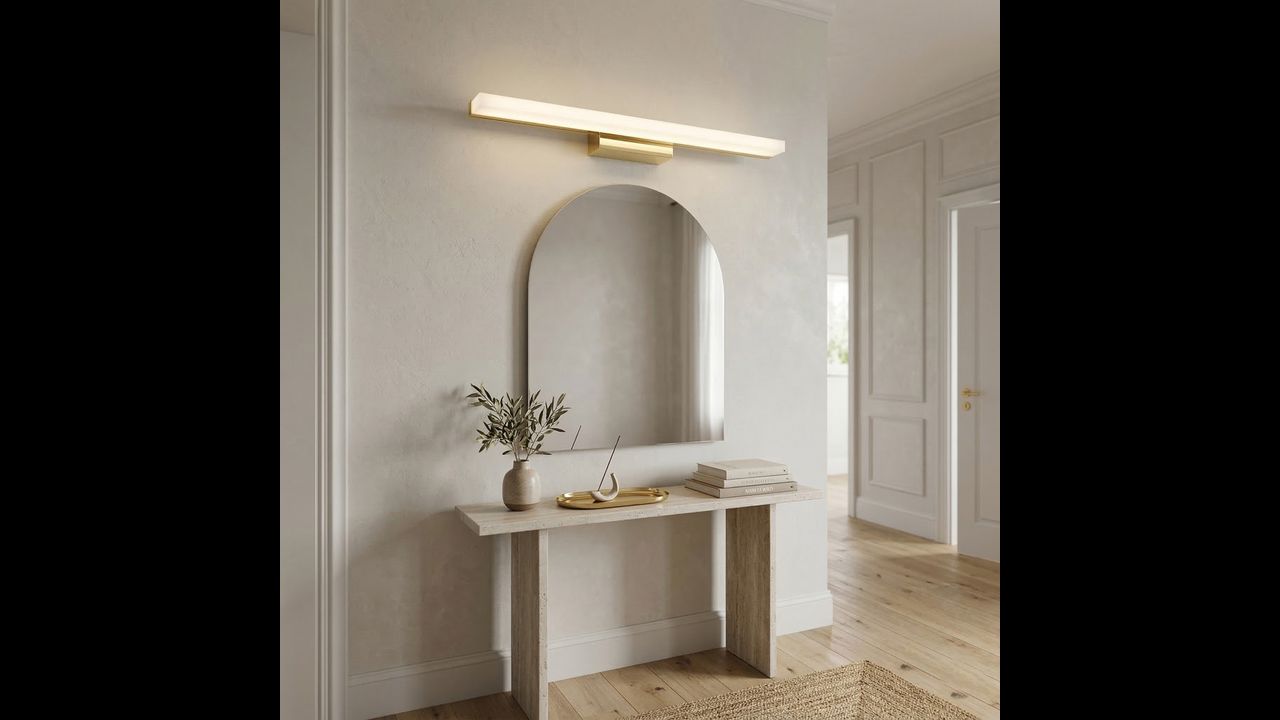 Aplică LED modernă de 9W, cu o formă minimalistă și alungită, reprezintă o propunere elegantă pentru baie, hol, dormitor sau deasupra oglinzii. Construcția subțire cu finisaj auriu, combinată cu un abajur mat, asigură un aspect estetic și o lumină difuzată uniform. Este un corp de iluminat funcțional, care se integrează perfect în amenajările interioare moderne și subtil luxoase.