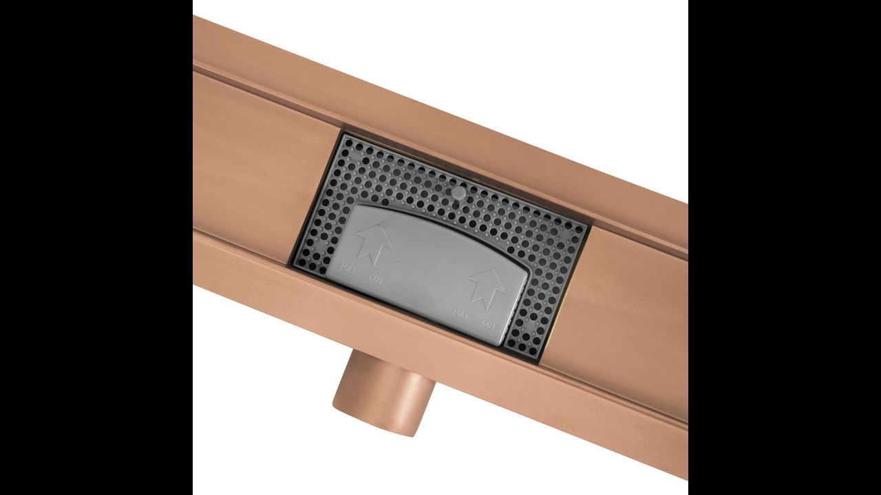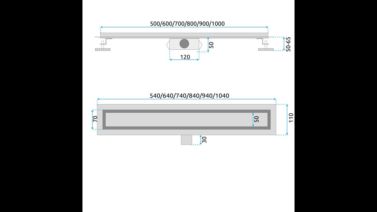 Masca rigolei este dublă – netedă pe o parte și adaptată pentru lipirea plăcilor pe cealaltă, permițând o integrare perfectă în designul băii. Astfel, rigola rămâne discretă, iar zona de duș capătă un caracter minimalist și elegant.