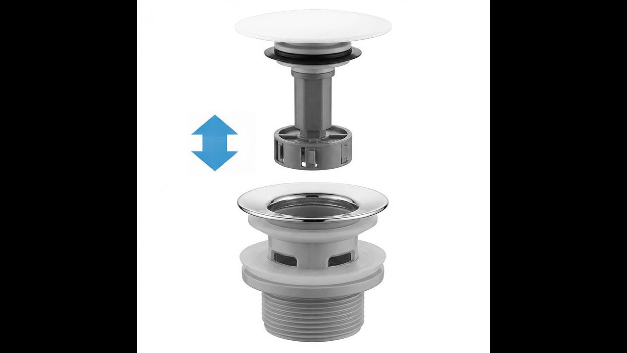 • Dop Click-Clack cu inserție detașabilă – mecanismul de tip “push-open” permite închiderea și deschiderea scurgerii printr-o singură apăsare. Avantajul principal este posibilitatea de a scoate complet inserția superioară a dopului, ceea ce permite îndepărtarea rapidă a firelor de păr și a depunerilor “de sus”, fără a fi necesară demontarea sifonului de sub lavoar.